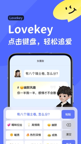 您可以自由选择喜欢的情话和表情符号,展示在键盘上,让您的聊天内容更加丰富多彩。