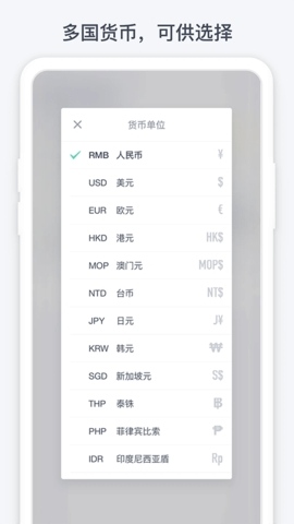 4、货币多选:支持一个账本多种货币(¥$€£)一起记账