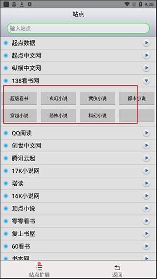 2、可以发现这里有许多书源站点,用户可选择自己喜欢的;