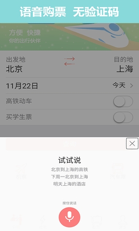 1、无需验证码,直接语音购票,语音录入信息更简单和便捷;