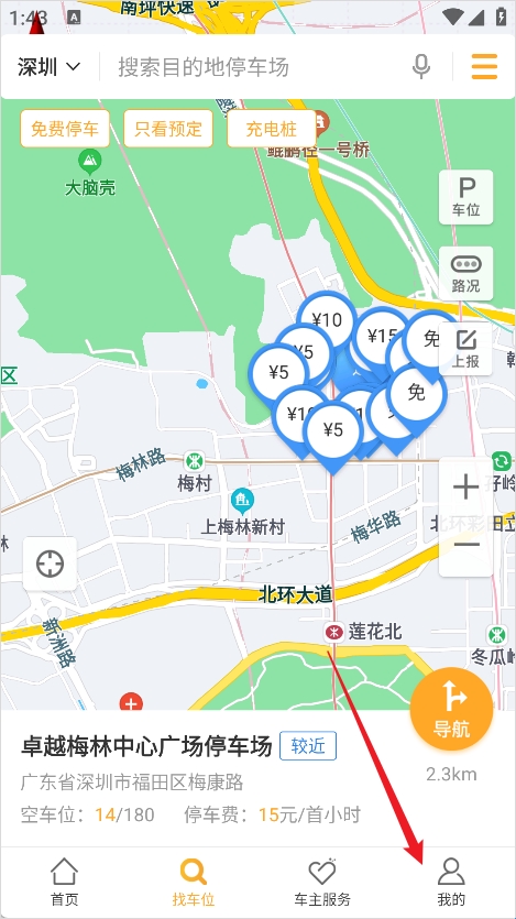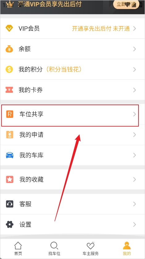 2、在个人主页位置找到共享车位