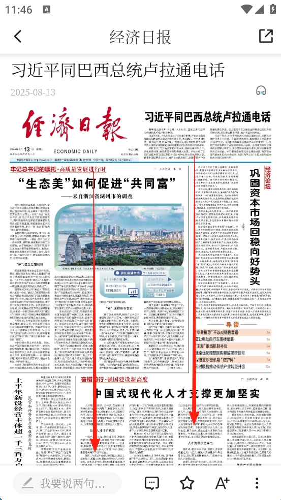 4、进入后,将屏幕向下滑动,亦可以通过放大查看原版日报。