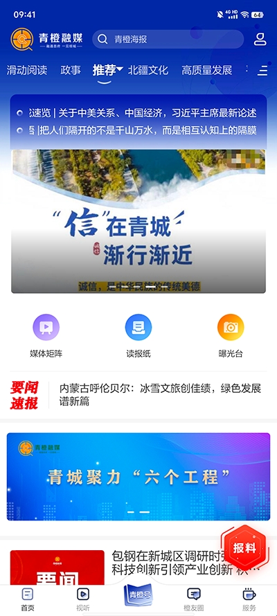 青橙融媒APP是一款地方资讯阅读平台,专为呼和浩特地区用户提供的。该软件内拥有的资讯内容以及功能服务都是十分全面和完善的,不仅可以满足大家的各种阅读需求,同时还为本地用户的生活带来了极大地便利。24小时实时更新,随时可以了解到最新最热门的资讯内容,还会为大家进行推送提醒,值得下载使用。