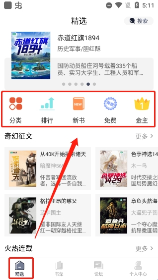 进入app点击“精选”我们可在此快捷的寻找官方所推荐的优质图书
