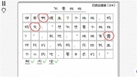 玩家可以通过点击屏幕找到错字,正确找到后会有提示音效。