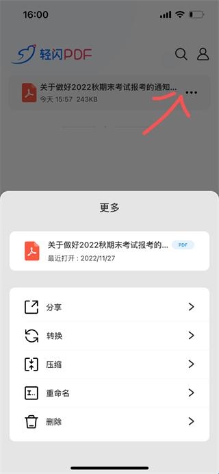 3、点击三个小点可以将你的文件进行压缩、分享、转换等。