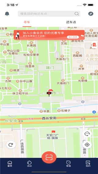 5、实现地图寻车、扫码开车,让用户在手机上就可以看到附近哪些地方有车辆,避免用户盲目找车的尴尬