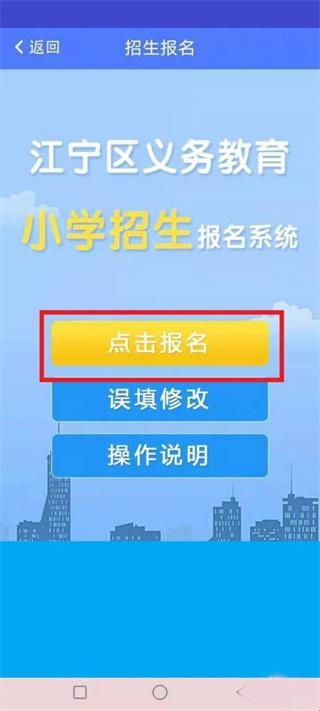4、进入江宁区义务教育小学招生报名系统,点击报名;