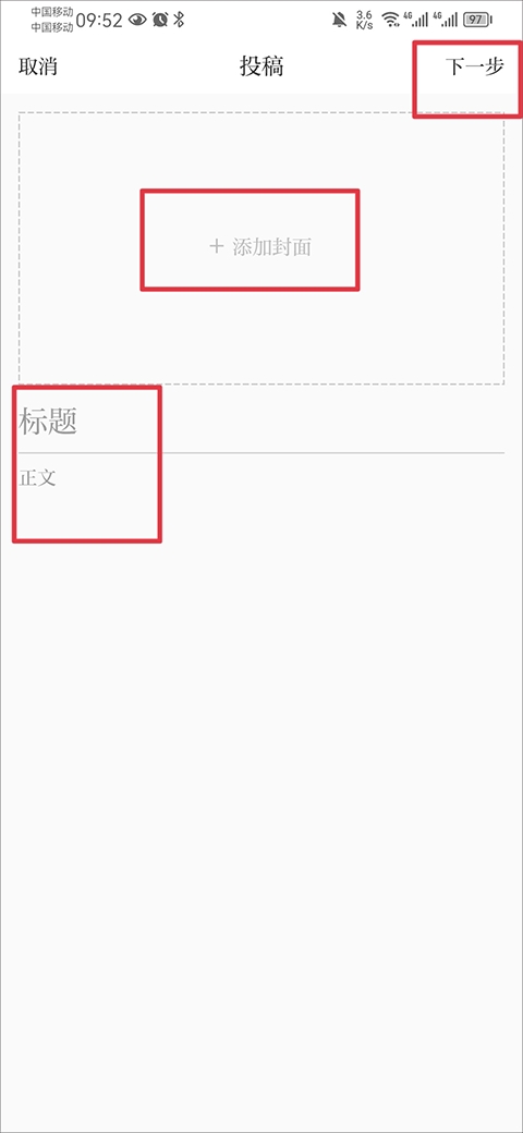 3、然后将稿件封面、标题、正文内容编辑完成后点击下一步