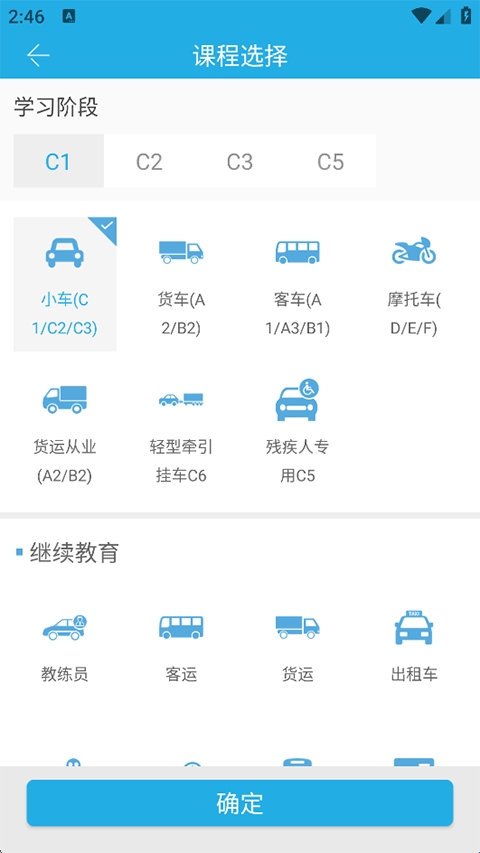 1、打开车学堂APP,选择学习阶段和所考车型,点击确定;