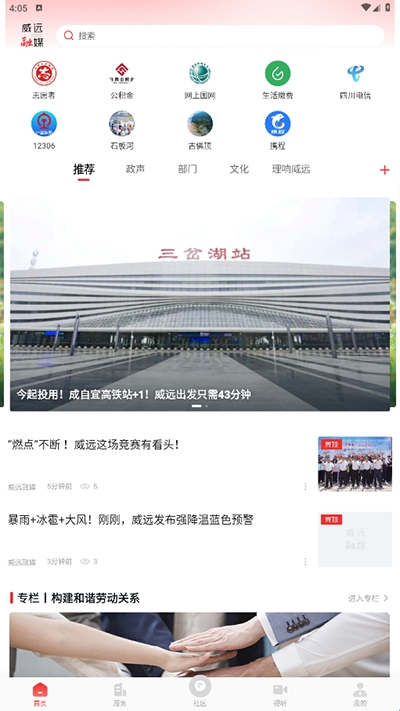 威远融媒APP是非常优秀的一款本地资讯融媒阅读软件,为大家提供的资讯内容也是很全面丰富的,可以满足众多用户的各种阅读需求。不仅24小时实时更新最新的内容资讯,同时还为大家提供了丰富的便民生活服务功能,极大地方便了本地用户的生活,还可以在社区话题畅所欲言等都是可以的哦!
