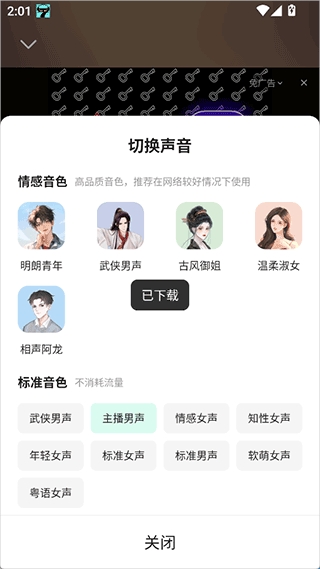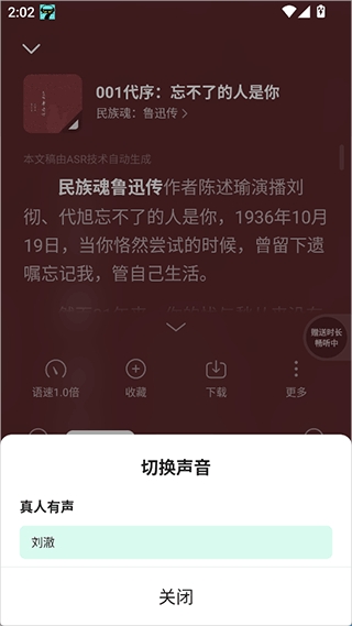 4、另外如果是相声、评书、人文历史等真人听书资源虽然也可以设置声音模式,但都只有一种