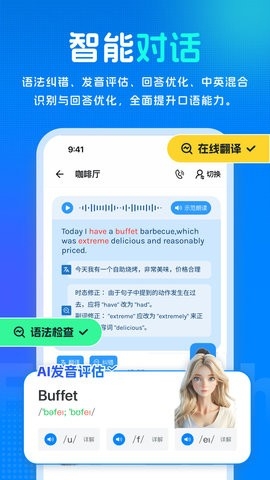 3、实时分析你的发音和语法错误,指出不足,帮助你快速改正语言小瑕疵!