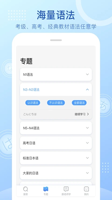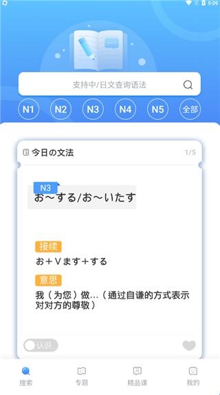 3、语法查询功能:用户可以随时查询需要的日语语法知识,方便快捷。