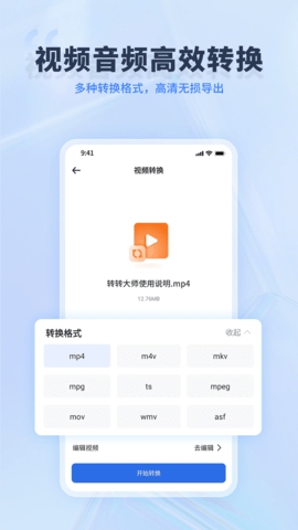 ●视频转换:可将MP4、M4V、MOV、AVI等多种视频格式任意转换。