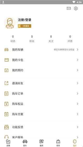 5、点击我的,可以登录app,查看绑定的车辆等
