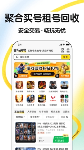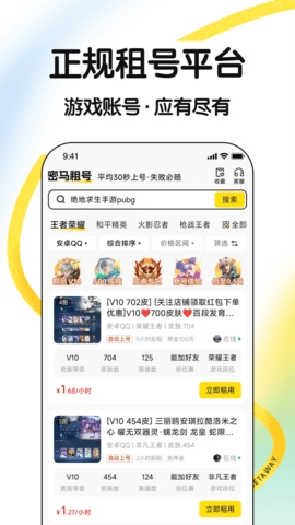 密马租号APP是一款专为游戏玩家设计的租号平台,提供了各种游戏账号的租赁服务。各种游戏大神的号都能让你在这里体验,平台都设置了安全的交易环境,都是一些热门的游戏,让你体验大佬级别的号,轻松的玩耍,随时进行联系租号,提供的各种功能服务可以方便大家在游戏中体验更多的内容和功能。