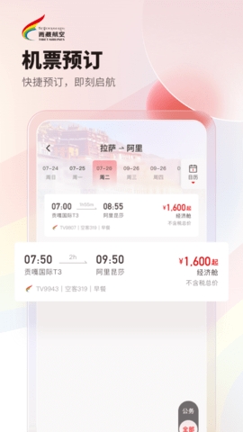 西藏航空APP是由西藏航空有限公司打造的一款可以为用户出行提供便利的软件。大家可以通过手机APP随时在线查询、购买所需的机票,只需添加购票人身份信息即可轻松购买,而且还可以使用里程兑换机票等都是可以的。支持在线选座、值机等操作,航班的动态信息也是可以查询,欢迎大家前来下载体验的哦!