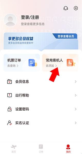 3、之后点击常用乘机人并根据提示输入相应信息即可完成添加
