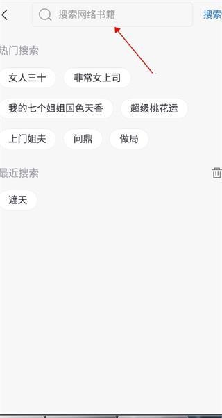 3、在跳出的搜索栏输入想要看的小说,在随后页面点击该小说即可。