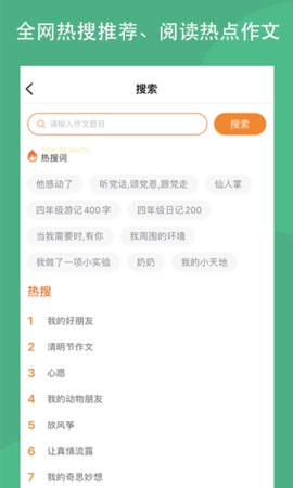 5、精准搜索推荐,为用户智能匹配作文书写相关素材,利于作文书写;