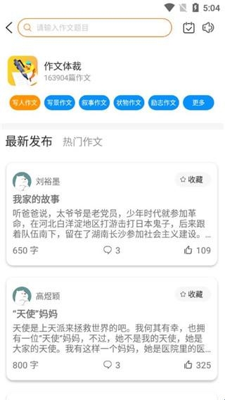 3、随意点击一个分类,可以看到最新发布的热门作文