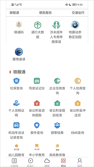 3、在便民服务中,用户可以在这里对社保进行查询、对驾驶证积分进行浏览、对企业和个人的信用进行查询、可以在这里用省公积金冲还贷。