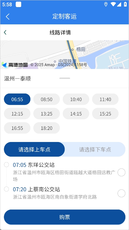 4、最后选择上车点以及下车点购买即可