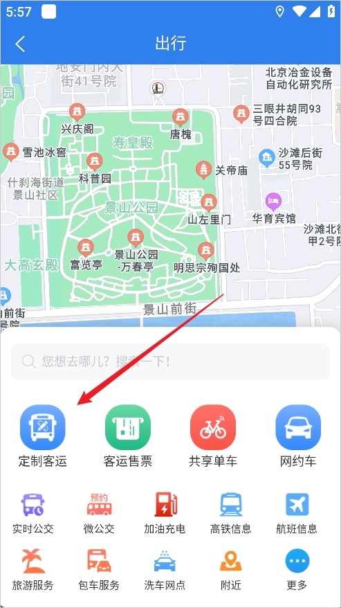 2、在这里选择定制客运