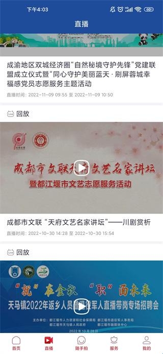 3、进入“直播”页面,就能观看该地区的各种直播比赛,主题活动,名家讲坛等等。