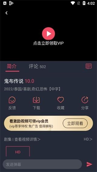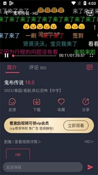 5、观看时可享用弹幕、下载、收藏、分享等功能。