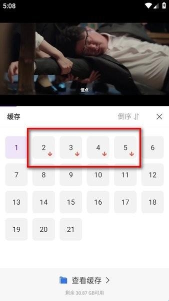 然后选择要下载的剧集,点击底部的“查看缓存”,可以看下载进度;