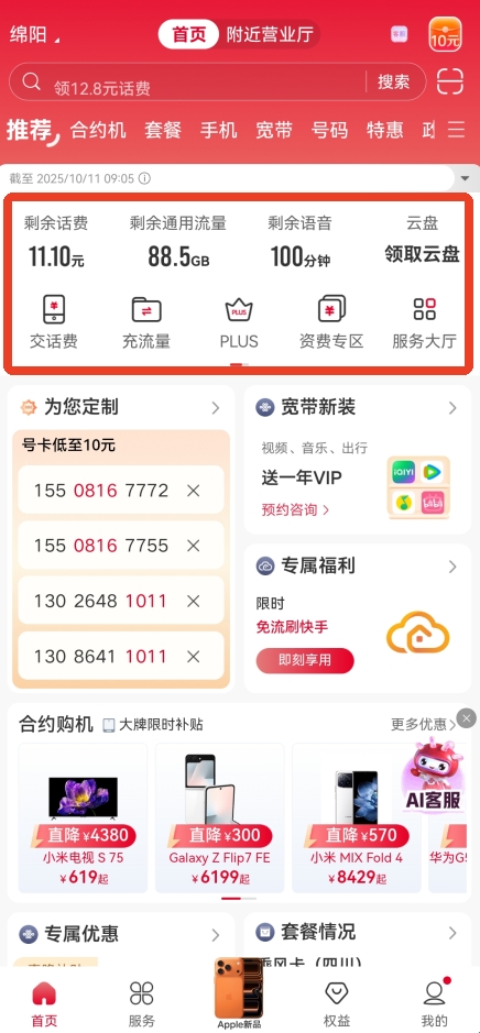 手机、办套餐、选号码一站式服务