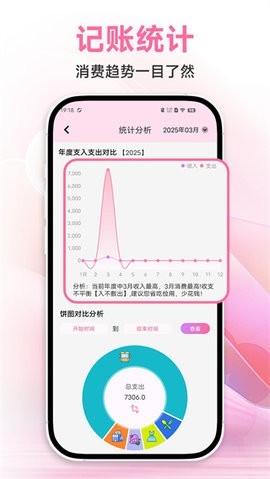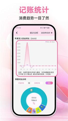 对用户记录的账单也会进行统计分析,方便用户可以清晰查看消费趋势,轻松统计分析。