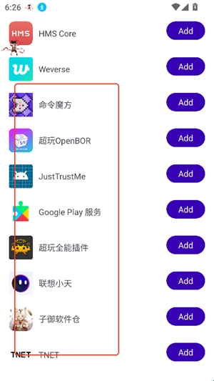 3、选择安装好的游戏应用,点击添加