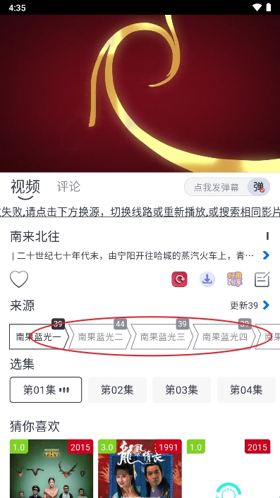 3、如果卡顿的话可以切换不同的来源。