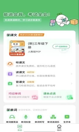 英语朗读宝是中小学生学习英语的得力助手,软件精准同步教材,拥有英语课本点读、英语单词跟读、英语同步学课文、英语发音测评报告等功能,软件涵盖人教PEP、外研、北师大等教材,适配1-9年级英语学习需求,帮助更多学生提高英语水平。