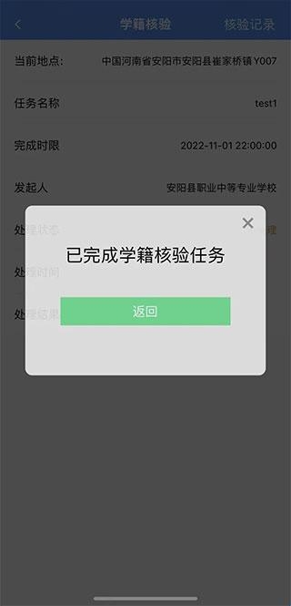 6、如果是在校核验的话,处理结果会是正常,否则显示异常或其他内容。