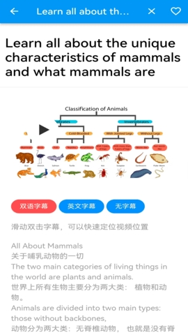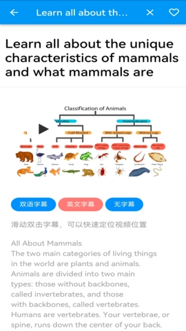 -提供双语字幕、纯英语字幕、无字幕三种模式切换,让您在真实语境中高效学习外语!