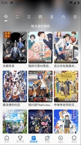 3、在排期表界面下,我们能够知晓每天的动漫更新情况。