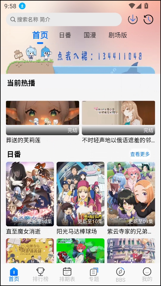 1、在软件首页,我们能够看到一系列当前热播的动漫作品。