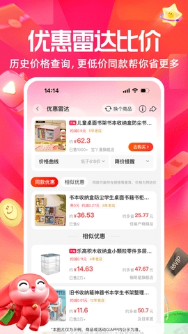 5、一淘购物可享大额现金红包,与优惠券叠加使用,省上加省,一省到底。