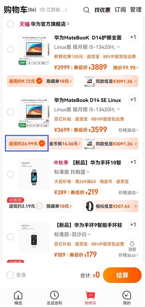 1、使用一淘进行返利前,先将需要在淘宝将想购买的商品加入购物车。