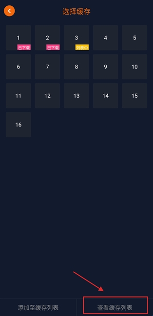 2、选择需要缓存的集数后点击左下角的【添加至缓存列表】