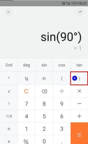 切换到科学计算器以后,如果我们想计算三角函数,操作步骤如下(以计算sin90度为例):
