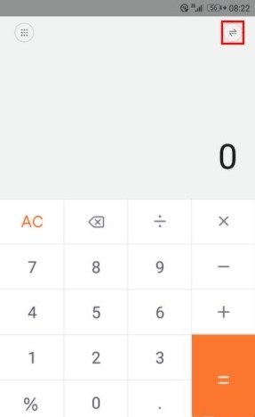 打开小米计算器的主界面以后,如果当前是普通模式,点击右上角的切换图标将它变为科学计算器模式。