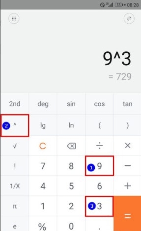 如果想进行指数运算,操作步骤如下(以计算9的3次方为例):