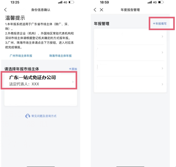 1、点击首页左上角位置信息,选择年报市场主体所在城市,点击【市监】-【填写年报】-【年度报告填写】,完成人脸识别验证,即可进入年报系统。