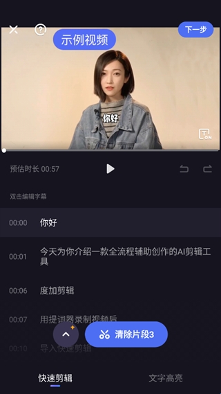 1、【快速剪辑】智能识别视频中无声、停顿、重复句及语气词等无效片段,勾选后一键删除,视频粗剪从未如此简单!