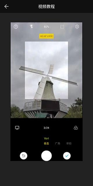 1、首先我们在下方将拍摄模式切换为【垂直】,并拍摄第一张照片。